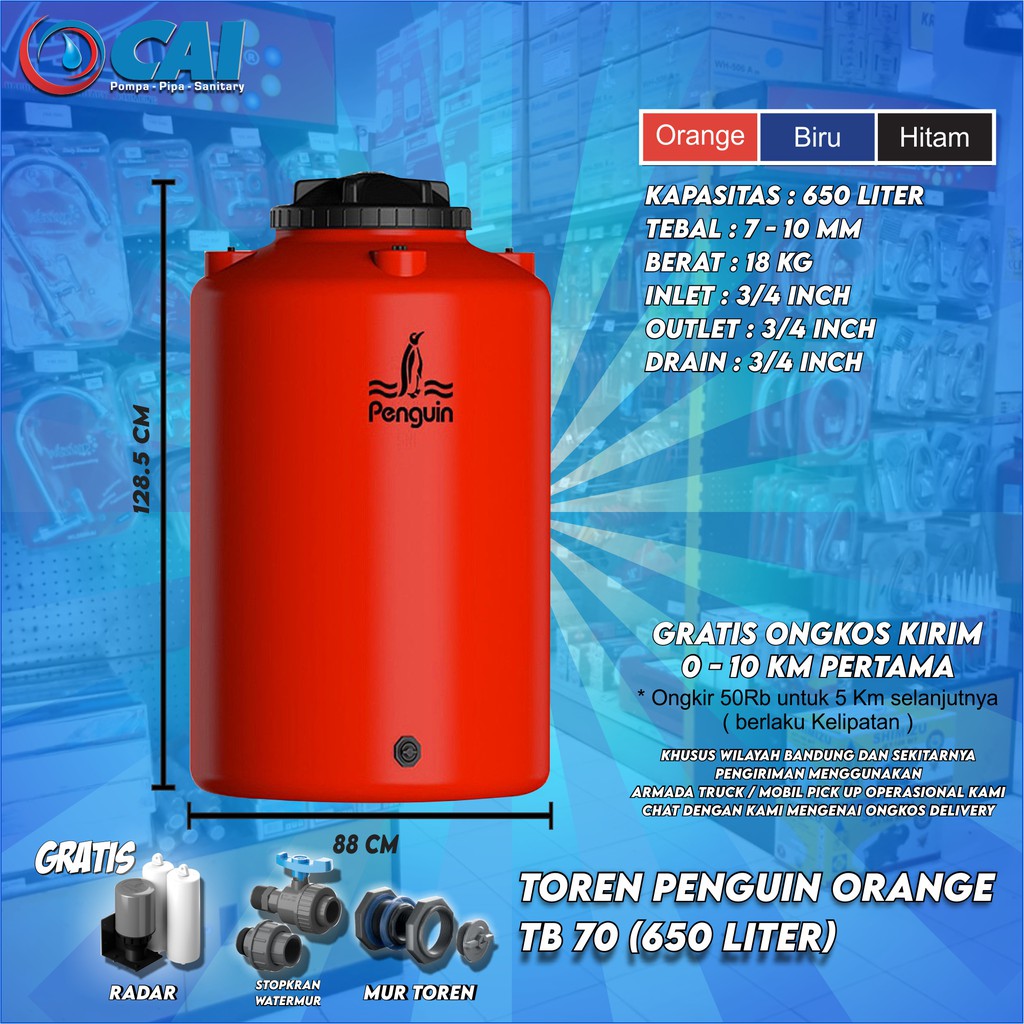Tangki air ub glass tp 5000 toren tandon air plastik. Tandon air penguin berbagai ukuran dan tipe. Ada yang memiliki kapasitas 250 liter, 300 liter, 650 liter dan ada juga yang berukuran besar hingga mampu menampung air sampai 2.000 liter. Lucky tangki air lucky polytank e clean 650 liter kaki tandon toren. Juga karena harga tangki air atau tandon yang dijual dipasaran sekarang lebih murah daripada biaya untuk membuat bak air. Cek⏩ promo harga tandon air terbaru ⭐ ragam ukuran & merk tangki air terbaik penguin tirta! Pada kesempatan ini kami akan berbagi informasi mengenai harga tandon air terbaru bulan ini tahun 2016 sebagai penambah referensi harga buat anda yang akan membeli tandon air / tangki air daftar harga di bawah ini khusus untuk tandon air merk penguin, profil tank, profila88. Harga tandon air penguin, info tangki air penguinterbaru. Begitupun dengan jenis tangki air, ada jenis tangki air solar, tangki air stainless, fiber, panel, excel. Berikut akan kami ulas informasi mengenai harga tandon air murah berkualitas terbaik yang tidak mudah lumutan, tidak mudah pecah serta tentunya bergaransi. Ada beberapa macam ukuran diameter tangki / tandon air di pasaran untuk keperluan penggunaan rumah tangga antara lain kapasitas ukuran 225 liter, 300 liter, 520 liter, 650. Menemukan 2963 barang toren air liter kisaran harga rp 1.74juta. Harga tandon air tersebut bisa saja mengalami perubahan tanpa ada pemberitahuan lebih lanjut, mungkin juga bisa terjadi perbedaan.